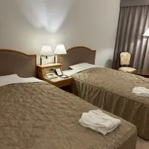 部屋は少し狭いですが、コストパフォーマンスは抜群でした。清潔感がもう少しあれば、さらに良かったと思います。外出するたびに鍵を預ける必要があったのが、少し疑問でした。サービススタッフの対応は非常に丁寧で素晴らしく、ロビーは広々としていて開放感があり、とても立派でした。