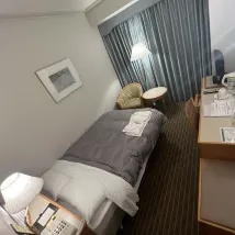 海浜幕張駅からスーツケースを転がしながら歩いて4分。外観やロビーは立派だが、部屋はそれほどでもない。ひと昔前のホテル、と言った感じで内装も古い。 アメニティは1階エレベーター前に置いてあるが、最低限の提供。スティックコーヒーやティーバッグもある。 部屋にミネラルウォーターのサービスが無いのはガッカリでした。今どきどこのホテルにもある物なので。 個人的に気に入ったのは、上下別のパジャマ。 部屋もバスルームも明るい。 お湯の出は良いが、バスタブの排水は遅い。また、ぬる過ぎるお湯しか出て来ず、このままでは風邪を引くと思ってフロントに電話したが、スタッフが来るまでずーっとお湯を出し続けたら、やっと温かいお湯が出て来た。 予約時のリクエストでエレベーター近くの部屋をお願いしたが、一番遠い、奥から2番目の部屋で荷物を運ぶのがしんどかった。 翌朝、清掃スタッフが出入りする部屋を覗いてみると、同じタイプの部屋はたくさんあったのに。 高齢者にはもう少し配慮して頂きたかった。 便は少ないが、ホテル前から空港行きのバスが出ている。