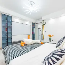 客室には、高解像度プロジェクター、24時間対応のバトラーサービス、1時間ごとのセキュリティパトロールなど、充実したアメニティが備わっており、非常に安心です。使い捨て用品もすべて客室にご用意しております。何より、新築なので移動が大変便利です。多くの観光スポットへわずか数分でアクセスできます!ぜひご宿泊ください。