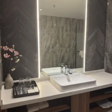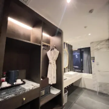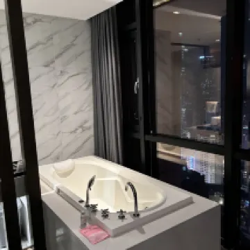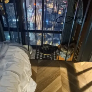 高層階ホテルでの滞在は最高でした!ホテルはクラウドアイ展望台と同じ建物内にあり、エレベーターで上がればすぐ展望台の核心部に到着します。高層階からのパノラマビューはまさに絶景で、カーテンを開けるだけで都会の美しい景色が広がり、特に夜景は心を癒してくれます。部屋は清潔で整頓されており、寝具は快適、バスルームはシャワーとトイレが別々で、お湯もたっぷり出ました。細部にまで配慮が行き届いています。フロントのサービスは親切で手際が良く、チェックインもスムーズでした。立地も便利で、下に降りればすぐにショッピングや観光に出かけられます。コストパフォーマンスも非常に高く、次回もぜひ利用したいです!