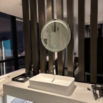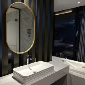 高層階にあるホテルで、とても満足しました。地下鉄の駅やロープウェイにも近く、ロケーションは最高です!部屋は44階で、眺めが素晴らしく、270度の窓からは山と街の昼夜の景色がどちらも美しかったです。ハンモックも快適で、夜景を見ながらの入浴は本当にリラックスできました。部屋は清潔で広々としており、まさかのサウナまで付いていたのは驚きでした。一日観光して戻ってきてサウナで汗を流すと、疲れがすっかり取れました。重慶に来たら、特色あるリバービューの部屋を体験しないと損です。全体的にとても良い滞在でした。