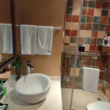 部屋は十分な広さで、広々としていて、景色が広く、太陽の光がたくさん入ります(天気が良い場合)。施設や設備は整っており、サービススタッフは熱心で真面目で責任感があり、家族への親近感があります。朝食はすべてサービススタッフによって作られており、おいしいです。唯一の欠点は、石鹸がないので髭を剃るのが少し面倒なことです。壁の絵は不快な感じがします。