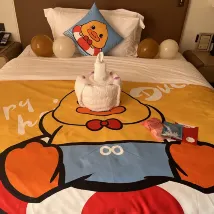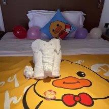 友人家族との旅行で、二家族ともロフトの滑り台ルームを予約し、子供二人は楽しい時間を過ごしました。執事のシャオ・チェンさんのWeChatアカウントを1週間前に追加したところ、執事さんはサービスが必要かどうかを積極的に聞いてくれて、夜遅くにアイスペールやストローを頼んだときでも、時間通りに届けてくれてとてもよかったです。 👍👍👍 今日チェックアウトするときに忘れ物をしてしまいました。シャオチェンもできるだけ早くホテルに連絡して、家まで送ってくれるようにしてくれました。