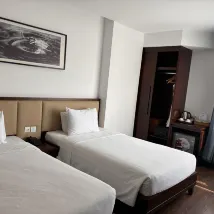 ホテルからの返信: 拝啓このたびは、Ritzy Boutique Hotel Da Nangをご利用いただき、またお忙しい中、非常に詳しく誠実なご感想をお寄せいただき、心より御礼申し上げます。スタッフの親しみやすさや、ビーチに近く便利な立地、周辺に多くのレストランやマッサージ店がある点にご満足いただけたとのこと、大変うれしく存じます。一方で、ご到着当日に無料の飲料水が十分にご用意できていなかった点、ならびにタオル類やバスマットの状態がご期待に沿えなかった点につきまして、深くお詫び申し上げます。いただいた貴重なご意見は関係部署に共有し、客室準備の手順およびランドリー管理の見直し・改善を行い、今後のサービス品質向上に努めてまいります。何卒ご理解賜りますようお願い申し上げるとともに、次回はよりご満足いただけるご滞在をご提供できるよう、再びお迎えできる日を心よりお待ち申し上げております。敬具Ritzy Boutique Hotel Da Nang
