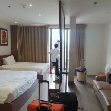 とても素敵なホテルでした。4泊5日滞在しました。スタッフは私たちの要望にとても丁寧に対応してくれました。近隣の目的地への無料シャトルサービスもありました。8階のファミリールームを予約しましたが、とても広々としていて清潔でした。9階は朝食ビュッフェだったので、寝坊する方は椅子が動く音がうるさいので8階はリクエストしない方が良いでしょう。朝食はまあまあで、毎朝色々な種類の温かい麺をいただきました。屋上のプールも素敵でした。バスルームにはスタンドアップシャワー用のバスタブがあり、多くのホテルのようにオープンシャワーでバスルーム全体が水浸しになってしまうのに比べるとはるかに良かったです。ホテルはビーチから遠く、徒歩圏内のレストランも限られていました。