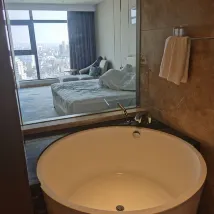 ホテルの場所は完璧です。階下には港、サイゴンコーヒー、バウンダリーNo.5、卸売市場があります。部屋は広くて清潔です。1つは枕がとても快適であることです。もう一方は硬く、もう一方は柔らかくなります。ホテルに泊まると無料で最上階に行けてベトナムを一望できてとても快適です。