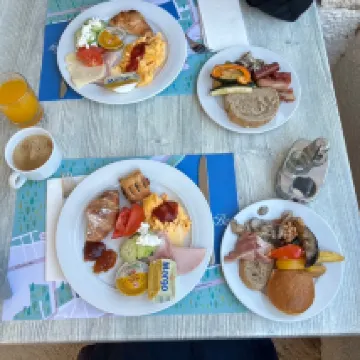 Great location and quiet hotel. Sensational sun set from front of hotel. Breakfast is ok and rooms are functional but you will want to be out and about anyway
