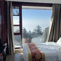 600元以上で2部屋予約しました。金頂で日の出を見たかったので、山頂のホテルを選びました。実際のところ、山頂には選択肢があまりありません。私たちが選んだのは、同じオーナーが経営し、隣に新しくオープンした、立地条件が最も良いお店です。隣にあるホテルの方が200ドル高いのですが、立地は以前のホテルほど良くない気がします。小さなゲストハウスの水準ですが、かなり古く、防音設備もありません。期待が低かったので、がっかりしませんでした。お金に見合う価値があるのは、その立地と景色です。景色を楽しめる床から天井までの窓があり、日の出鑑賞ポイントからも遠くありません。標高がかなり高いので、夜は少し高山病のような感じがします。