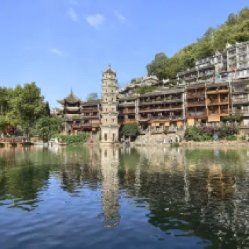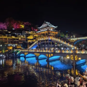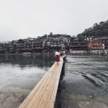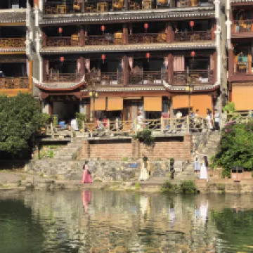 The hotel is very close to the bridge just walk 5 mins. Good location to walk around the ancient city and along the river. The service is superb. You need to contact hotel in advance as they need to meet you at the parking lot and bring you the hotel. The breakfast is at the restaurant nearby (local chinese style). The noodle soup is very delicious. Special thanks to Xiao Hong and Ar Ming for very nice hospitality. As there is no Didi in Fenghuang, they helped us to book the car to the airport and made sure that we arrived at the airport safely. Although they speak very limit English, we can communicate with WeChat.