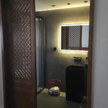 Modern finishes in a stylish room. The hotel lobby though is not as advertised and is just a room at the back of a makeup parlor. Check out was supposed to be 2pm, but we were told to leave by 12pm.