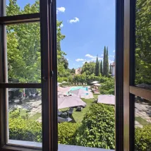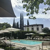 ホテルのアメニティはどれも私の好みにぴったりでした…ピカピカの金具、木製の窓、透き通ったプール。フィレンツェの喧騒の中に、トスカーナの魅力と南フランスとイタリアのゆったりとした雰囲気を感じさせてくれます…本当に素晴らしいです。そんなに急いでいなければ、そのまま日光浴をしたり、泳いだり、のんびり過ごしたいくらいです…
