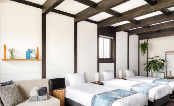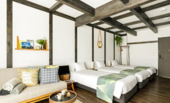 全部で 6 ある冷房完備の客室には冷蔵庫、電子レンジなどが備わっており、ゆっくりおくつろぎいただけます。客室ではWiFi (無料)をご利用いただけます。シャワー付き浴槽のある専用バスルームには、深めの浴槽、バスアメニティ (無料)が備わっています。セーフティボックスや電気ポットをご利用いただけます。