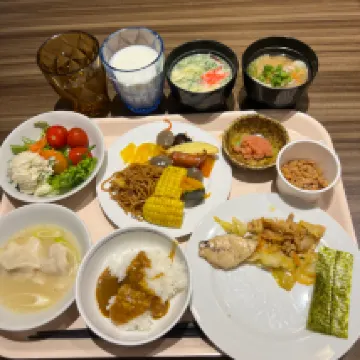 朝食は種類が豊富で、立地も良いです。