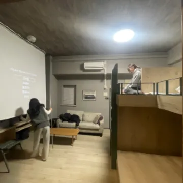 駅から少し離れていて、ロケーションはあまり便利ではありません。部屋にプロジェクタースクリーンがあるのは良かったです。お風呂のお湯の温度もちょうど良く、座って体を洗える小さな椅子があったのがとても助かりました。部屋のスペースも広めで、コーヒーメーカーも完備されていました。