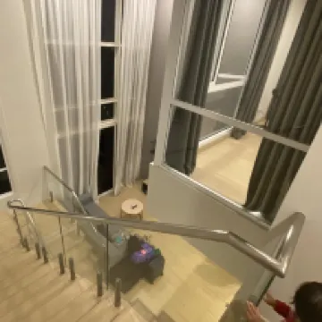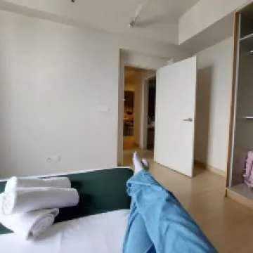 リビングルームにはブラインドがありましたが、完全には遮光されていなかったので、一度**でメインの廊下を歩いていると誰かが覗き込んできました。それ以外は、アパート自体は問題ありません。こぢんまりとしていて、広々としています。清潔で、洗濯物を干せるバルコニーもありました。ジムも広くて良かったです。ただ、ロビーはホテルと共用なので分かりにくかったです。