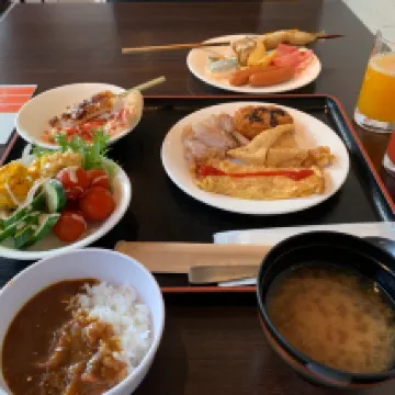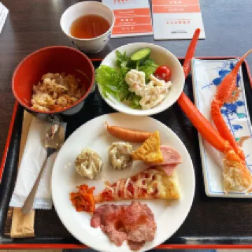 食事は朝食を、いただきました。 鮎の塩焼きや、高山ラーメンなど、岐阜県の名物があり朝食にしては珍しいメニューがあり、他県からの旅行者には高評価と思います。 自分は岐阜県民なので笑