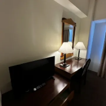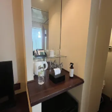 ホテルは少し古い感じがしました。家具も年季が入っていますが、比較的清潔でした。駅へは比較的アクセスしやすいです。宿泊客は多くなかったので、静かに過ごせました。ロビーには自由に使えるスキンケア用品があり、自転車も借りられます。価格は安いです。