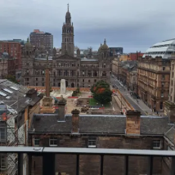 Cute boutique hotel in a prime spot near Buchanan St and with some rooms overlooking George Square. We stayed in a studio with a balcony on the 7th floor, which had a great view, but was a little unhandy when the only elevator went out of service 3 of the 5 days during our stay. The room was spacious in terms of hotel rooms in the city centre, and well equipped with everything we might need in the kitchenette, plenty of storage space, good quality linens and towels, upscale toiletries, and a roomy bathroom with a nicely tiled shower. The staff were all very helpful, and did a good job of communicating with us when my husband's golf bag we had shipped over from the US preceded our arrival by a few days; they kept it in reception until we got there. Parking is a good distance away, and there is no good place to load/unload, though if you follow the instructions from Reception, you can get a discounted daily rate at the parking garage they recommend. The shuttle bus from the airport, subway, and, train station are within a few blocks, so you definitely don't need a car to get places within (and to a great extent without) the city.