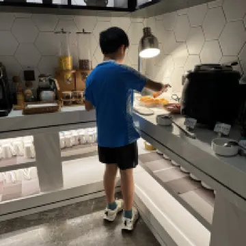 部屋の設備はかなり良く、子供用のバスアメニティとスリッパがあり、チェックインの夜に子供にはキャンディーのギフトバッグとスナックのギフトボックスが与えられました。朝食は美味しかったですが、レストランの小さな座席エリアは少し狭かったですが、基本的に必要なものはすべて揃っていました。夕方、子供が牛乳を飲みたがったのですが、コンビニが閉まっていたので、フロントスタッフが自分のデラックスを子供のために持ってきてくれました。店を出るときにまたお菓子のギフトボックスを渡されました。細やかなサービスに心遣いを感じます❤️