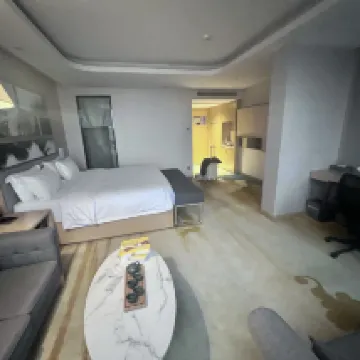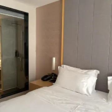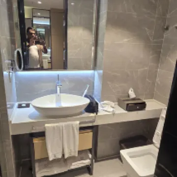 出張でこのホテルに宿泊しましたが、期待をはるかに超える素晴らしい体験でした!まず第一に、24時間対応の空港送迎サービスが気に入りました。到着がどれだけ遅くなっても、ホテル特製のメルセデス・ベンツ MPV が空港までお迎えに上がります。思いやりがあり、プロフェッショナルです。ホテルは空港の近くにありますが、騒音は全くありません。客室には二重防音ガラスが備わっており、夜もぐっすり眠れます。 衛生状態は完璧です。ドアを入るとすぐにほのかに消毒液の匂いがします。寝具とバスタオルは白くて新品です。部屋はシンプルなビジネススタイルで設計されており、天然木の家具と温かみのある黄色の照明が、温かみのある家庭的な雰囲気を醸し出しています。設備は非常にスマートで、テレビは画面をキャストでき、デスクにはワイヤレス充電パッドが付いており、細部までよくできています。一番驚いたのは、部屋に空気清浄機が備え付けられていて、鼻炎の患者にとても優しいことです。 サービスチームは業界のベンチマークです。フロントの女性は、部屋のタイプのアップグレードを積極的に手伝ってくれ、私たちに会うたびに温かく迎えてくれました。朝食は便利で豊富です。徒歩5分圏内にコンビニや薬局がございます。出張やトランジットにおすすめです!