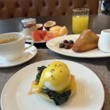 同行した家族の誕生日を伝えたところ、ホテルからバースデーケーキとフルーツをプレゼントしていただき、とても心温まるおもてなしでした。ケーキが本当に美味しかったので、後で階下のパン屋さんでもう一つテイクアウトし、東方会ラウンジでお茶と一緒にゆっくりいただきました。東方会のお姉さんが、箱から出して綺麗に盛り付けまでしてくださり、美味しくて見た目も華やかで最高でした🥰