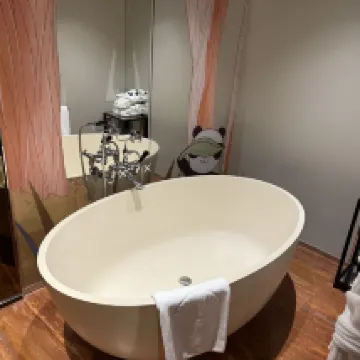 オープンして数年経ちますが、いくつか比較検討した結果、最終的にMOを選びました。 広州交易会期間中、多くの外国人宿泊客が訪れ、客室はほぼ満室でした。 冀玉堂氏によって設計された公共スペースと客室は、実に独創的なデザインとなっています。鏡の用途はたくさんあるので、迷ってしまうほどです。 ドアマン、受付からルームサービスまで、サービスは非常に丁寧で申し分なく、心からの熱意と親しみやすさを感じることができます。 私たちはホテル全体で唯一のファミリールームを予約しました。二段ベッドと滑り台は子供たちを本当に喜ばせました。部屋はパンダの要素でいっぱいで、レイアウトもかなり細かく作られています。壁の木のライト、ドアのところにあるパンダのお尻の形をした靴替え用の椅子、ベッドの頭のところにあるキノコのライト、そして緑の植物までもが子供のような無邪気さに満ちています。 部屋割りもとても合理的です。休憩エリア、浴室、トイレはそれぞれ独立しています。早起きしてドアを閉めれば、子供たちを起こさずに食器を洗うことができます。 ホテルには電気トイレがあり、浴槽のスイッチもレトロで精巧です。供給品は他の MO とは異なります。ウーロン社製ではなく、非常にニッチなブランドで、香りはカモミールです。 ウェルカムフルーツのプレートは誠意が感じられ、5種類、スターフルーツや桃などはあまり見かけない種類もありました。子どもたちへのウェルカムギフトもマンダリンベーカリーが製作しました。絶品で美味しかったですし、ガラスのボトルに入ったお水もとてもおしゃれでした。 朝食がセミビュッフェ形式で選択肢が少ないのが少し残念ですが、提供は早いです。インターネットで広まっていたフレンチトーストはそれほど美味しくなかった。私のようなデブ好きには脂っこすぎました。ビュッフェには中華料理よりも西洋のペストリーの方が多いですが、お粥はとてもおいしく、種類は毎日変わります。ジュースは搾りたてではなく、このレベルのホテルにはふさわしくありません。 ホテルは太古匯に直結しており、お食事やショッピングに大変便利です。近くにはタクシーの交通量が多いですが、地下鉄の駅には非常に近いです。