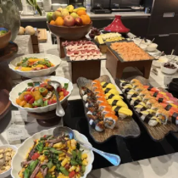サービスは丁寧で熱心、焼き菓子は美味しく、いくつかの質問にもすぐに返答と回答がありました。エグゼクティブラウンジからは広州タワーのいくつかのビルが一望でき、すぐ下には太古匯があるのでショッピングも楽しめます。