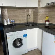 公寓式酒店,房間裏配有洗衣機和冰箱很適合旅遊出差住幾天的,乾淨整潔舒適環境是鬧中取靜的小區,打車和地鐵都方便,外賣會直接送到門口。服務很周到 忘記帶洗面奶了打電話去前台幾分鐘就送上來,退房後可以免費寄存行李。性價比高值得推薦。