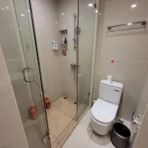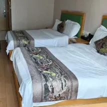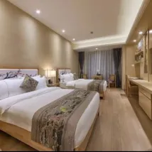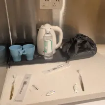 Close to shops and a large variety of food such as many Chinese restaurants and small eateries plus many western food take away brands. McDonald's, Burger King, Pizza Hut, Subway and Taco Bell and more. So great location to stay as lots of convenient shops around you. Staff do their best to help with the aid of translator language apps. Rooms have everything you could need including washing machines. Service each day and 2 bottles of water. Only negative was the internet was not usable even with staff help it would not work in our rooms on 7th and 9th floor. Buy a Chinese phone sim to use internet is best choice. Would stay here again for its closeness to all key things including a few nearby massage shops if you have been walking all day at the Canton Fair. They also provide a free bus to and from canton fair if that is why you are staying here. Last point is excellent water pressure showering 😀