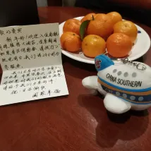 チェックインはスムーズで、デポジットも必要ありませんでした。ホテルはとても迅速に対応してくれました。果物や手書きのグリーティングカード、そして中国南方航空の小さな飛行機も送ってくれました✈️この小さな飛行機がとても気に入っています💗追記: 弟は背が高くてハンサムな