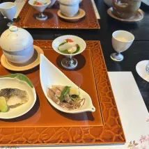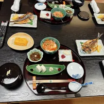 We had a traditionally Ryokan stay at Gyokutei with both Japanese-style dinner and breakfast served in our room. The food was absolutely incredible - meticulously and beautifully prepared and served. The room is older, but charming! The view of the courtyard gardens was stunning, the in-room hot springs bath was perfect, the futon bedding and pillows so comfortable and the communal bath and view was lovely. Most of all, our room attendant Kyoko was absolutely wonderful. So attentive and sweet, explained the meals and best way to eat them, how to most enjoy the ryokan, etc. it was a magical stay. Don’t hesitate! Enjoy what Gyokutei has to offer. It’s so special - from the hosts receiving us upon arrival, to walking us to our cab as we left - truly memorable!!!