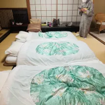 We had the most amazing experience at this ryokan! It was well worth the money. We spent 3 nights here and the staff were absolutely amazing! They made us feel like royalty. Yes the rooms are traditional and older looking but it was spacious and clean. The food we had every day was just Devine. Even our children loved their kids meal. What an experience for the whole family. It is very seafood based which we loved. Every meal was different which was great. Breakfast was served at either 8 or 8.30am and dinner we had an option of 6 or 6.30pm. Dinner would take nearly 2 hours but we didn’t mine. Both meals are served in our rooms. The onsen was a bonus experience for both adults and kids. The ryokan is located on a hill but in walking distance to Hakone Yumoto train station. A bit tricky with luggage but for day to day sightseeing, it was fine. Highly recommend this ryokan experience. We are so sad to be leaving but grateful for the experience.