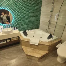 ホテルはとても新しくて大きいですが、設備はとても良いです。欠点は、バスアメニティが使いにくく、十分ではないことです。次回行くときは、缶全体を入れて押すことができることを願っています。それはより便利で十分です。