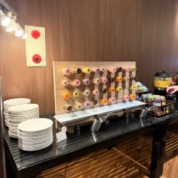 ラウンジで手で直接食べるお菓子だったのでおしぼり探してもなく係の方に声かけたらひとつしかいただけなくちょっとせつなかったです。 朝夕のご飯はとても美味しかったです。