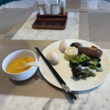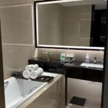 整體體驗很滿意。設施都很新、用着順手,前台小張服務也貼心,必須好評~還主動推薦周邊去處。房間乾淨寬敞,床品舒服,落地窗採光也好,衞生細節挑不出問題 。 早餐是亮點,中西式都有,還有杭州本地小吃,種類豐富又新鮮。性價比不錯,下次來濱江還會考慮。