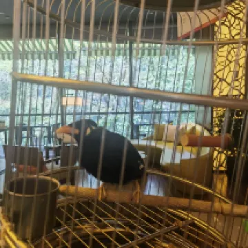 お部屋のバルコニーは森に直接面しており、夏はとても快適です。部屋の浴槽には、親子で入浴できるようにデザインされた黄色いアヒルがいて、子ども心をくすぐります。ロビーにはムクドリがいて、子供たちはそれをからかって話したりするのが好きです。 ホテル内の食事環境は予想よりも良く、料理は比較的軽めで、暑い夏の日に適しています。