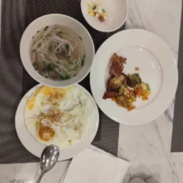 朝食が種類が多く、果物、チャーハン、炒め料理、スープなどがあり、フォーも食べられたので、満足です。部屋も綺麗でした。