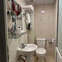 ホテルは少し古かったですが、シャンプー、コンディショナー、石鹸、歯磨き粉、歯ブラシ、シェーバー、ヘアゴム、裁縫道具など、使える洗面用品は豊富に揃っていました。ミニバーもありましたが、フロントでコーラの缶を買おうとしたところ、お金は部屋に置いておくように言われ、ミニバーに何か持っていったかどうか確認するまで、出て行くことを渋られました。結局、部屋にお金を置いていくと、女性が私が支払ったことを示すまで、彼は私にもう一度お金を払わせようとしました。また、壁はとても薄く、警備員や上の階の人たちの声がとてもうるさかったです。
