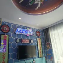 動漫酒店,非常適合帶孩子親子家庭入住,孩子特別喜歡,也喜歡裏面的動漫人物,還有遊戲機可以玩,裏面的拳皇可以親子互動一起PK,地理位置也不錯,步行離中央大街大概800多米,目前隔壁工程有噪音,不建議5層居住,前台很貼心,剛開始5層住噪音大給我們換到3層,基本就聽不見了,反正孩子也喜歡,入住還可以。