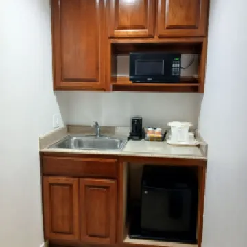 空港から近い…駐車料金10ドルだが安い便 客室は広く清潔で、客室にはシンク台の冷蔵庫、電子レジなどがあります。 便利さ。 朝食も大丈夫