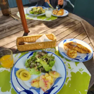 部屋は清潔で快適でした。個人用トイレは小さいですが、共用トイレがあり、清潔で広々としています。オーナーは親切で寛大でした。素敵で静かな場所で、車で簡単にアクセスできます。朝食も美味しかったです。