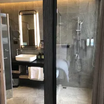 The room design is very cool, everything worked, good water pressure. The shower is separated from the toilet, so it's comfy for friends staying together. For us as a family it didn't matter.