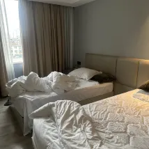 Stayed in a private twin share bed, as there weren't double. Never stayed in a room without having a bathroom, and used the shared bathroom 🚻. To my surprise, it was really nice, had all the amenities of shampoo, conditioner, body wash and hair dryers. The location was very central and to subways stations. Would recommended.