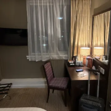 A very well situated hotel right in the centre of Inverness and just a few minutes walk from the central train station. Surrounding the hotel are plenty of bars, restaurants, and shops which is great and you’re also very close to the bus station for taking trips out of town. The room was basic and a little bit tired (some dents and scratches, frayed carpet) but otherwise was clean and tastefully decorated with basic amenities like a kettle, hair dryer, tea bags, a large TV, so on. We were facing the main road so on Saturday evening it was quite loud but the reception desk provided us with ear plugs upon request which were more than adequate. We would come back to this hotel again next time we’re in Inverness.