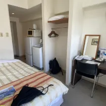自分はハウスダストのアレルギーがあります。 部屋はカビ臭く。エアコンはお掃除ランプが光っていて、エアコンをいれると咳が止まりません。 部屋の換気扇はホコリとカビだらけ。 また、ベランダも清掃されておらず汚いです。 換気をしようにも網戸がありませんから虫が入ってきます。 ベッドは硬く寝心地も良くないです。 一つも良いところがありません。 外に寝るほうがマシです。 絶対にやめたほうが良いです。