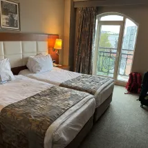 早朝の便は午前9時頃に到着しましたが、追加料金なしで部屋が空いたらすぐにチェックインすることができました。場所はタクシム広場のすぐ近くで、入り口は交通量の多い道路に面しているので、見つけやすいです。すぐ近くにレストランがたくさんあり、24時間食事が楽しめます。夜は部屋に大音量の音楽が流れ、音源はドアの前の道路からではありませんが、10時を過ぎると基本的に静かになります。近くに美しいギリシャ教会がありますので、お見逃しなく。