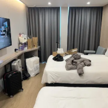 立地がとても便利で、周辺には様々なお店やレストランがあります。向かいには新羅免税店とアジア薬局があります。 中国語サービスがあり、コミュニケーションは非常にスムーズで、私たちの要望にも迅速に対応してくれました。スタッフのサービス態度も素晴らしいです。 私たちの部屋タイプには使い捨て歯ブラシが備え付けられていましたが、もしなくてもロビーの自動販売機で購入できます。 唯一少し残念だったのは、部屋の設備に一部破損が見られたことです(トイレのドアの鍵が閉まらなかったり、コーヒーメーカーの裏蓋が壊れていたりしました)。