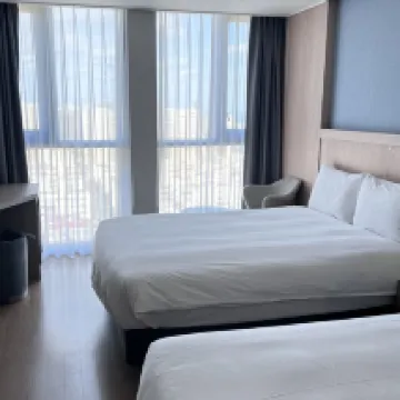 立地は素晴らしく、空港からタクシーで2.5km、料金は8,000ウォン以上(約40人民元強)でした。ホテルの向かいには新羅免税店があり、2階建てのOlive Young専門店へは徒歩5分です。ホテルの5階には海底撈火鍋があります。 ホテルの朝食もとても良かったです。私達3人の角部屋には朝食が2名分しか含まれていなかったので、毎日1名分追加しました(26,000ウォン、約120人民元強)。食事は毎日同じメニューでした。 ホテルは清潔で整頓されており、サービスも行き届いています。毎日3種類のクッキーが3枚ずつ提供されました。 高層階の部屋からは、朝、窓越しに海岸線に着陸する飛行機が見え、とても綺麗でした。