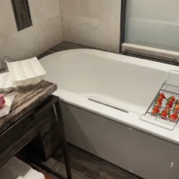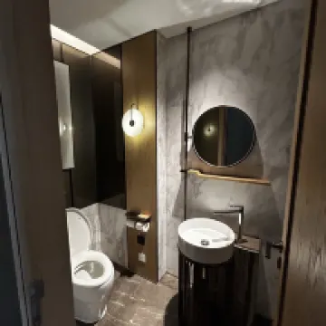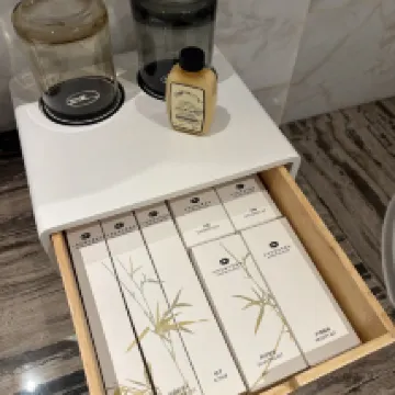 ホテルの設備は五つ星ホテルの基準を満たしており、セルフサービスの荷物預け機やファーストクラスの保安検査券もあるので、早朝便には非常に便利です。しかし、テレビはミラーリング機能がなく、ライブ放送しか見られませんでした。また、広い洗面台の排水が悪かったので、早急な修理をおすすめします。