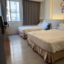 立地:最寄りMRT前金駅から徒歩7~8分くらい。橘線なので、高鐵からも空港からも乗り換えが必要なのは不利な条件。七賢二路という大きな通りに面している。セブンイレブンは交差点のはす向かいに100mくらい進んだところにある。六合夜市の反対側?の入口まで徒歩10分あまり。あれこれ見ながら歩くと気にならない距離。 部屋:きれいでした。広いわけではないけれど窮屈さを感じるほどでもない。スーツケース置き場はあった。シャワールームもきれいだが、トイレと仕切りがないため、びっちゃびちゃになる。耐えられない方は避けた方がいい。水圧はOK。 TV:チャンネルは何十もあった。台湾のTVはもちろん、スポーツ、ドラマ、映画などのチャンネルも見られる。 アメニティ:飲料水2本とお茶のティーバッグあり。狭い台になぜか空気清浄機と一緒に置いてあり、なおさら狭い。なお歯ブラシ・かみそりなどのアメニティは、私が泊まった2024年末まではありましたが、2025年1月からは禁止されるため、自分で用意しましょう。 朝食:地下1Fで食べる。品数は全部で15~20品ほど。ご飯、おかゆのほかに自分で作る担仔麺のブースがあり、これらは温かい。しかし、その他のおかずは温められていない。もっと温かかったらもっとおいしかっただろう。私は食べていないが、パンなどもあった。 その他:カップラーメン2個無料券をもらった。1F奥のスペースで、コーヒー・紅茶、ポップコーン、クッキー、包子、アイスクリームなどが無料で提供されている。夜ごはんから帰ってくるとそのスペースの円卓で、提供されているものをアテにして(おそらく持ち込んだ)お酒を飲まれている方がいらっしゃって、驚いた。